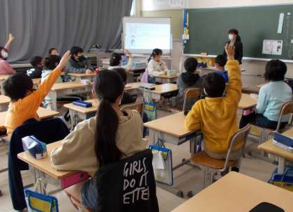 5年生は、1組が国語「和語・漢語・外来語」、2組は、道徳「ディズニーランドのお子様ランチ」の授業を公開しました。