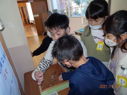 【不思議な形のコマ】11/30 公開日 2021/12/01 更新日 2021/12/01 お知らせ コマづくり名人の方が作ったコマを地域の方が持ってきてくださいました。校長室前にコマ遊びコーナーを設置したところ、早速回してみる子どもたち。身近なものの重心を生かして、よく回るコマに子どもたちは笑顔いっぱい。遊びながら科学の不思議に触れることができました。