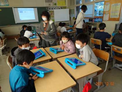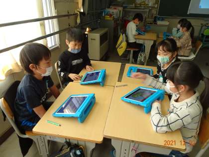 【ICT支援員さんによる情報教育 3年】12/2 公開日 2021/12/02 更新日 2021/12/02 各学年から 3年生は、ICT支援員さんにタブレットの発表ノートを使った「好きなもの紹介」のつくり方を教えていただきました。 基本的な使い方を教えていただいた後で、自分の好きなものの紹介の仕方を考え、グループで発表し合いました。 今後、教えていただいたことを生かし、自分の考えや作品を紹介することに活用できそうです。