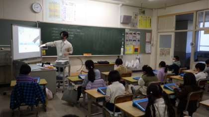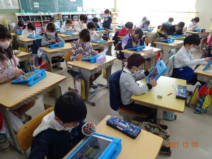【ICT支援員さんによる情報教育 2年】12/2 公開日 2021/12/02 更新日 2021/12/02 各学年から 2年生はICT支援員さんにプログラミングソフト「スクラッチキッズ」の使い方を教えていただきました。好きなキャラクターと背景を選び、プログラミングブロックを組み合わせていきます。キャラクターが動いたり、鳴き声が聞こえたりすると、子どもたちから歓声が上がります。楽しみながらプログラミングの基礎を学ぶことができました。