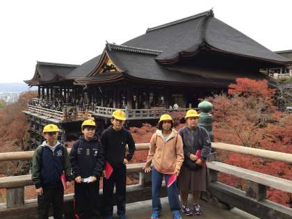10時過ぎに最初の見学地、清水寺に着きました。仁王門前でクラス別に写真を撮った後、有名な清水の舞台にた立ちました。上から見た高さにビックリ!見学後は参道にあるお店で食事と買い物です。全員元気に過ごせています。