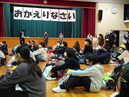 遅い時間、寒い中にも関わらず、お迎えに来ていただいた保護者の皆様、ありがとうございました。6年生は、この経験を生かし、卒業までの約3か月、さらに大きく成長していくことでしょう。今後とも、ご協力のほど、宜しくお願い致します。