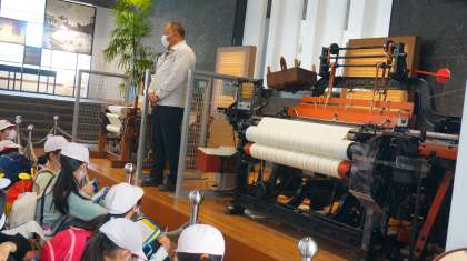 社会科「クルマの町をつくる」の学習の一環として、トヨタ鞍ヶ池記念館に行ってきました。現在、4年生は社会科で豊田喜一郎さんについて学習しています。子どもたちは調べたいことを前もってたくさん書き出し、今日の校外学習をとても楽しみにしていました。トヨタ鞍ヶ池記念館では、自動織機の実演や、喜一郎さんの生い立ちDVD、自動車づくりの苦労が描かれているジオラマ、実際に作られた車の展示などがあり、みんな興味津々でメモを取っていました。実際に目で見ることで、副読本「とよた」だけでは分からなかった多くのことを知ることができました。