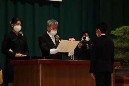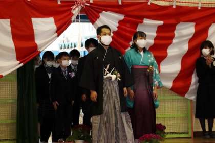 【卒業証書授与式 その1】3/18 公開日 2022/03/22 更新日 2022/03/22 学校行事 令和3年度卒業証書授与式を挙行しました。コロナ予防のため、人数を制限し、会場には、卒業生と保護者、ご来賓の代表の方、在校生代表として5年生5名、教職員のみ。5年生の他の児童は、教室でオンラインで視聴しました。あいにく、天候は途中から雨が降り出しましたが、卒業生の児童は、晴れやかな表情で卒業証書を授与されました。