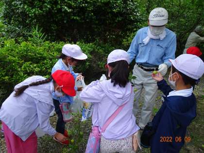 【2年 梅取り その2】6/9 公開日 2022/06/10 更新日 2022/06/10 特色ある学校づくり推進事業 あっという間にスーパーの袋がパンパンになるくらい大量の梅を拾うことができ、子どもたちは大喜び。学校にかえってからも少し赤くなった実や、蜜のにじみ出た梅を手に取り、「ももみたいなにおいがするよ。」「おいしそうだね。」話していました。みんなで話し合って梅ジュースにすることになりました。おいしい梅ジュースになりますように!