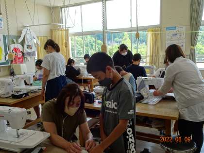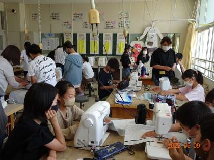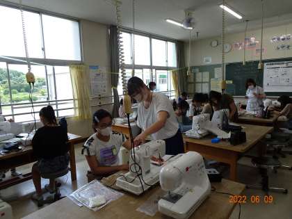 【ミシン学習 6の2 1日目】6/9 公開日 2022/06/10 更新日 2022/06/10 地域学校共働本部 6年2組のミシン学習1日目。ボランティアさんのお陰で子どもたちは、安心してミシン学習に取り組むことができました。