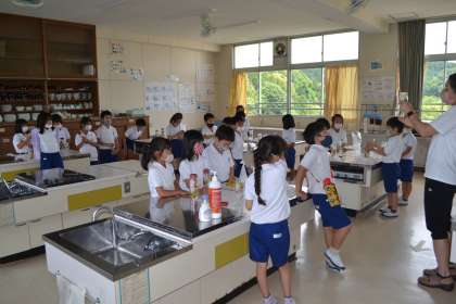 【梅シロップづくり】6/14 公開日 2022/06/14 更新日 2022/06/14 特色ある学校づくり推進事業 1・2年生が浄願寺で収穫させていただいた梅を使って梅シロップづくりをしました。コロナ対策のため、一人一人小瓶を用意し、梅と氷砂糖を丁寧に瓶に詰めていきました。甘くておいしい梅シロップが出来上がるのが待ち遠しいです。各自家に持ち帰りますので、氷水や炭酸水で割って飲むと、きっと元気いっぱい、パワーも湧いてくることでしょう。