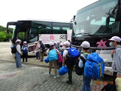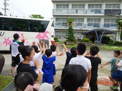 【野外学習、行ってらっしゃい!】6/16 公開日 2022/06/16 更新日 2022/06/16 学校行事 5年生の出発を他の学年の子どもたちが見送りました。運動場まで駆けつけてくれた4年生、教室のベランダから声をかけてくれた1年生、お守りを作ってくれた6年生。学校のみんなが5年生の無事と野外学習の成功を祈っています。