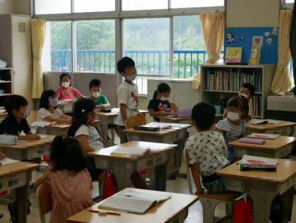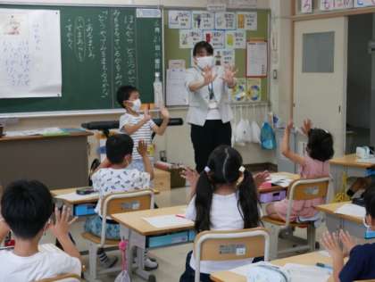 「本から、動物がどうやって身を守っているか調べよう」というテーマで、知りたいことを本に書いてあることから見付ける方法を教えていただきました。知りたいことがいっぱいの1年生。教えていただいたことを生かして、興味のあることを自分で調べ、知識をいっぱい増やしていくことでしょう。