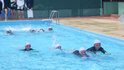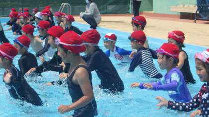 2年ぶりのプール。修繕工事が長引き、やっと今日から水泳の学習を開始できるようになりました。初日は、無理をせず水慣れから始め、今後少しずつ泳ぎの指導をしていきます。学年ごとの回数が少ないため、上達するまでに至らないかもしれませんが、安全に配慮し、楽しいプールの時間にしていきたいと思います。