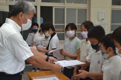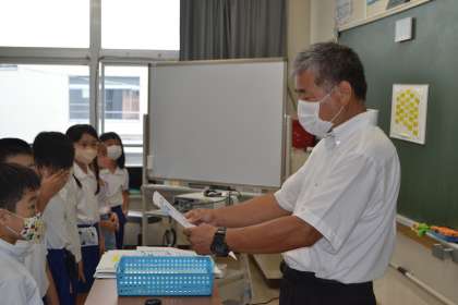 【古瀬間賞、うれしいな】9/2 公開日 2022/09/08 更新日 2022/09/08 学校の特色ある活動 古瀬間小学校では、児童の善行や努力を認め、自己肯定感を高めることができるように、「古瀬間賞」の表彰をしています。この日は、夏休み前に自分で設定した目標を達成できた子どもたちに、校長先生からブルーリボン賞の表彰状が贈られました。夏休み中も、努力を続け、有意義に過ごすことができた子どもたち。晴れ晴れとした表情からは自信と成長が伝わってきました。