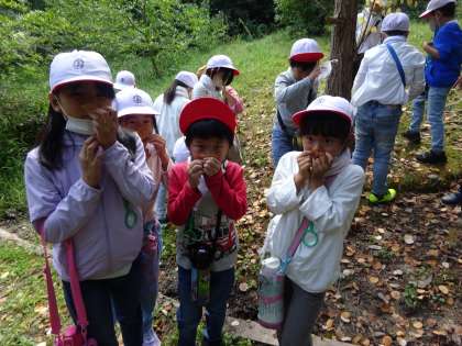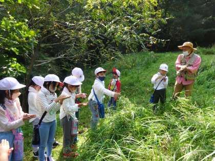 【秋のトヨタの森 2年1組】9/30 公開日 2022/10/04 更新日 2022/10/04 各学年から 2年1組が、生活科の学習の一環でトヨタの森に行きました。たくさんの生き物や植物もすっかり秋。隊長さんに教えていただきながら、秋の里山を五感を使って思い切り体験しました。