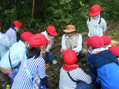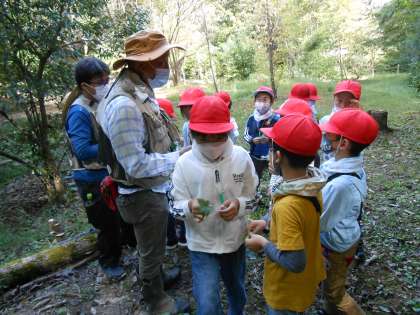 【秋のトヨタの森 2年2組】10/3 公開日 2022/10/04 更新日 2022/10/04 各学年から 10月になり、トヨタの森はすっかり秋。虫やトカゲなどの生き物の秘密や木の実や葉の季節の変化を隊長さんに教えていただきました。さわやかな天候のもと、里山の秋を五感でたっぷり感じることができました。