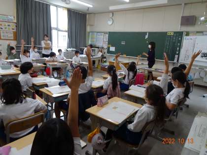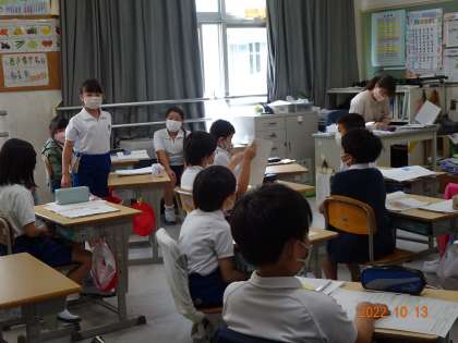 3年1組で国語「サーカスのライオン」の研究授業を行いました。自分で老いぼれたと思い、元気をなくしていたライオンのじんざ。男の子との出会いを通して、自信とやる気を取り戻していきます。子どもたちは、言葉に着目し、じんざの心の変化を読み取り、話し合いを深めていきました。姿勢よく手をぴんと挙げる子どもたち。校長先生や多くの先生たちの参観する中、自分の意見を自信をもって発表する子どもたちの姿に感心しました。