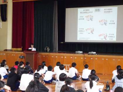 学校保健委員会の2時間目は、高学年と希望された保護者を対象に学校薬剤師の先生から「スマホ・ゲームが脳へ与える影響〜脳を守るためにできること〜」のテーマで講話をしていただきました。スマホには強い依存性があり、成長期の児童の脳に大きな影響を与えます。SNSやゲームなどは、成績に悪影響があるだけでなく、依存症になりやすいこと、子どもが一旦依存症になると大人を治すよりもはるかに困難であることなどを教えていただきました。スマホ依存を防ぎ、脳の健全な成長を促すために、教えていただいたことをぜひ生活に生かしてほしいと思います。