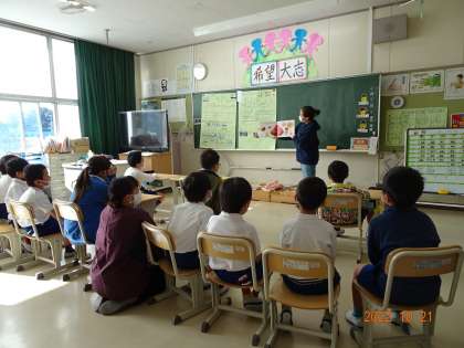7・8・9組では、楽しい絵本の読み聞かせ。子どもたちは笑顔いっぱいになりながら、お話の世界に夢中になっていました。