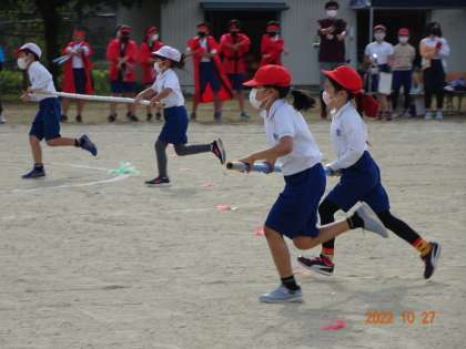 【運動会 3年生】10/27 公開日 2022/10/28 更新日 2022/10/28 学校行事 運動会のはじめは、3年生。「新時代」の曲でキラキラのポンポンを持って元気いっぱいダンスをしたり、徒競走や台風の目で力いっぱい競い合ったりしました。