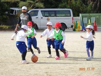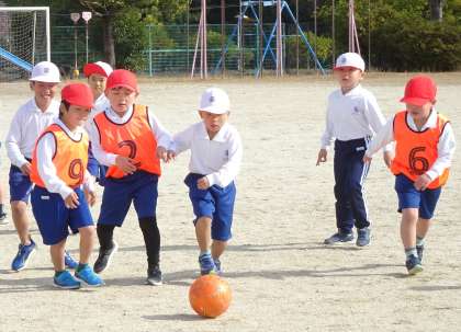 【1年 グランパス ボールクリニック】11/17 公開日 2022/11/17 更新日 2022/11/17 各学年から 名古屋グランパスからコーチに来ていただき、サッカーの基礎を楽しく教えていただきました。ボールを使わない体慣らしの運動から始め、ボールを使ったリレーなど、サッカーになじみのない子も楽しめるように優しく声をかけてくださいました。ゲームが始まると真剣な表情でボールを追う子どもたち。楽しい経験を通して、すっかりサッカー大好きになっていました。