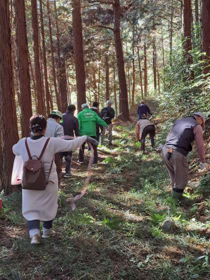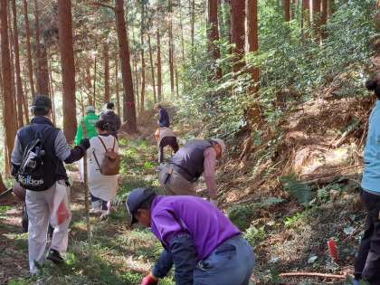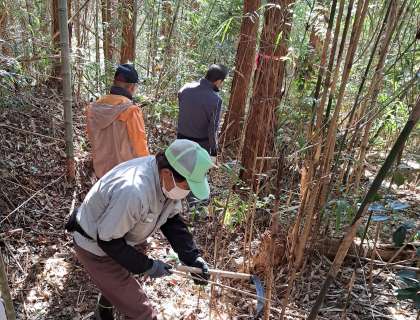 11月30日に予定している6年生の里山学習に向けて、地域と保護者のボランティアの皆さんが、安全に活動できるように整備をしてくださいました。けがをしないように丈の短い木を切ったり、滑らないように草を刈ったり、道に迷わないように目印を付けてくださったりしました。整備には約2時間かかりましたが、子どもたちに体験を通してこの地域に愛着をもち、学んでほしいという願いが伝わってきました。皆様方のご尽力に心より感謝しています。