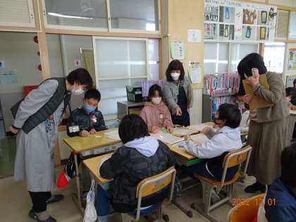 5年2組で養護教諭の先生が研究授業を行いました。内容は、「けがの防止:めざせ!古瀬間小救急隊ー正しいけがの手当てができるようになろうー」です。くじ引きで異なるけがが割り当てられ、グループごとに手当ての方法を話し合いました。
