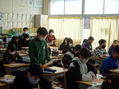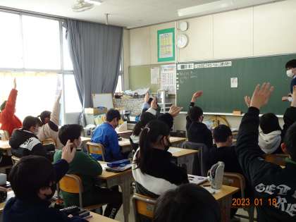 【道徳研究授業 6年1組】1/18 公開日 2023/01/18 更新日 2023/01/18 各学年から 6年1組で「私のせいじゃない」を題材に、道徳の研究授業を行いました。特別の教科道徳になり、自分事として考え、議論することを通して、価値についての考えを深めていきます。校長先生や多くの先生たちの参観する中、6年生の子どもたちは、差別や偏見、傍観について考え、いじめをなくすためには、どうすればよいかを真剣に学び合いました。