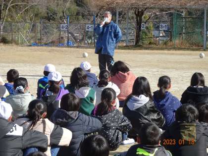阪神・淡路大震災から28年。南海トラフ大地震を含め、地震はいつ起こるか予測できません。子どもたちが自分で考えて安全な行動ができるように、今回の避難訓練は、日時を予告せずに行いました。昼放課の緊急放送に驚いた子もいましたが、担任の先生から指導されていた避難方法を思い出し、落ち着いて行動することができました。