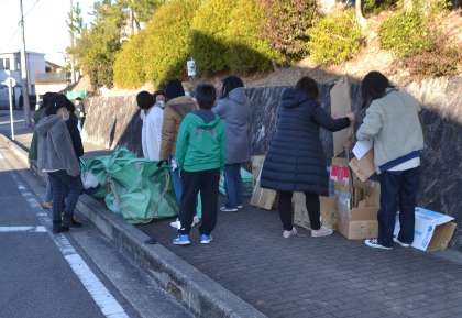 【PTAリサイクル、ありがとうございました その1】1/21 公開日 2023/01/21 更新日 2023/01/21 PTA活動 PTA親子リサイクル活動を行いました。コロナ感染対策のため、今回も自宅から段ボールや新聞紙などの紙類を持ち運ぶ形にしました。早朝にもかかわらず、どの集荷場所でも子どもたちと一緒に保護者の皆様が活動していただき、あっという間にリサイクル資源の山が出来上がっていました。