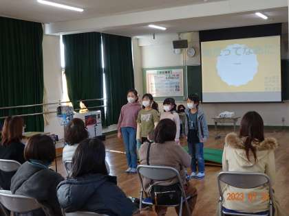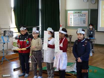 3年2組の学習発表会。総合的な学習で学んできた「福祉」をテーマに、どのグループも息の合った発表をすることができました。「パフ」の合奏では、3年生で始めたリコーダーなど練習の成果を発揮し、楽しい演奏を聴いていただきました。多くの保護者の皆様にお越しいただき、子どもたちはとても張り切っていました。