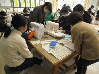 【ミシンボランティア 5年】2/3 公開日 2023/02/07 更新日 2023/02/07 地域学校共働本部 5年生は家庭科のミシンの学習で毎年エプロンを作ります。初めてミシンを扱う子も多く、担任一人では、手が足りません。ミシンボランティアの皆さんが優しく丁寧に子どもたちのサポートをしてくださったお陰で、子どもたちは安心してミシン学習の第一歩を踏み出すことができました。