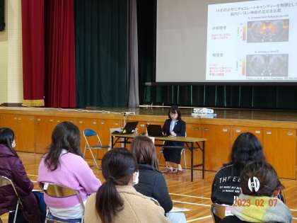 令和5年度の新入学児の保護者の皆様にお越しいただき、入学説明会を行いました。学校薬剤師による「子どもの脳の成長とデジタルメディア」と題した講演では、スマートフォンなどのデジタルメディアが脳の成長に与える影響について、具体的な事例を示しながらお話をしていただきました。