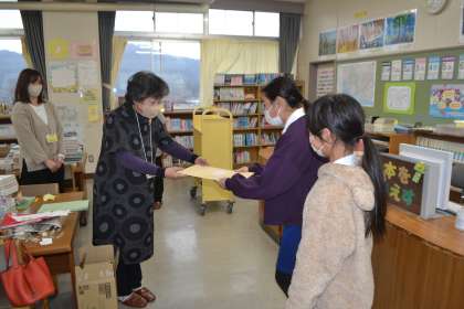 【図書館整備ボランティアの皆さん、ありがとう】2/10 公開日 2023/02/13 更新日 2023/02/13 地域学校共働本部 2月の図書館整備ボランティア。皆様のお陰で図書館が潤い、子どもたちにとって利用しやすく、通いたくなる図書館にしていただいています。子どもたちから、「ありがとう」の気持ちを込めてボランティアの皆様に色紙をお渡ししました。 本年度は、3月にも図書館整備を行っていただけることになりました。皆様のご尽力に心より感謝申し上げます。