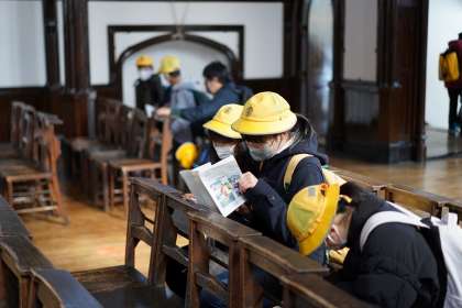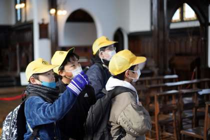 6年生は社会科の校外学習として、明治村に出かけました。この日は、6年生全員が参加し、班ごとに自分たちで立てた計画に沿って歴史的建造物などを見学したり、現地のガイドさんの説明をメモをとりながら聞いたりするなど、意欲的に学ぶ姿が見られました。