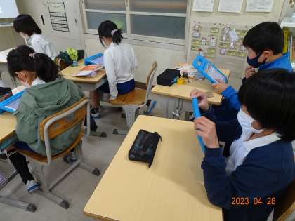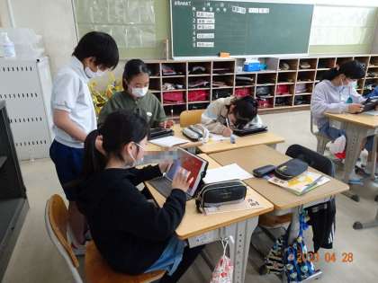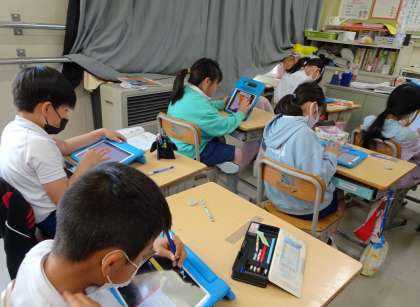 【タブレット活用】4/28 公開日 2023/04/28 更新日 2023/04/28 各学年から タブレットが導入されて4年目になりました。調べ学習や発表、デジタルドリルなど様々な場面で活用しています。タブレットを使うと自分の調べたい情報に簡単にたどり着いたり、発表したいことを効果的にまとめたりできます。タブレットの良さを生かしつつ、友達との学び合いも大切にしています。