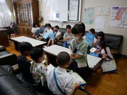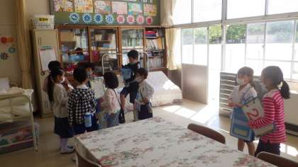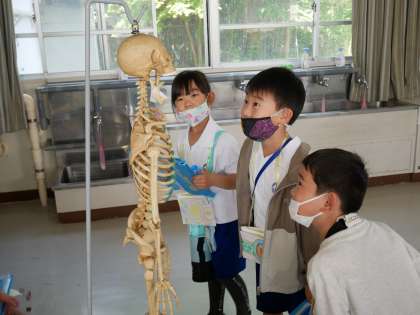 【学校探検 1・2年 その2】5/1 公開日 2023/05/01 更新日 2023/05/01 各学年から 校長室では、ソファーに座り、お客さんになった気分。 理科室では、がいこつの模型にどっきり。保健室では、どんなときにお世話になるかを2年生がしっかりと教えていました。