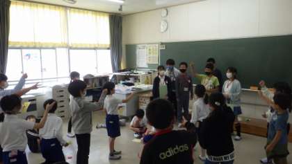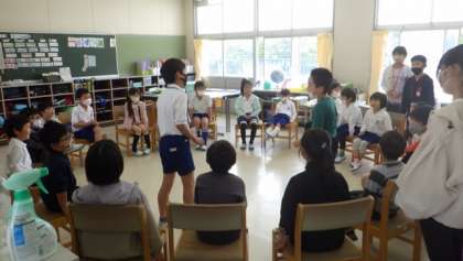 【1年生を迎える会 レッツ班遊び】5/15 公開日 2023/05/17 更新日 2023/05/17 学校行事 1年生を迎える会では、レッツ班で集まって自己紹介の後、交流遊びをしました。イスとりゲームやハンカチ落とし、じゃんけん大会などを各班、6年生のリーダーを中心に工夫しました。楽しく遊ぶことができました。