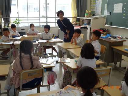 2年生の授業参観。活動を取り入れ、元気いっぱいに学び合っていました。