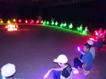最後に学年行事で取り組んだ表現。様々な色ののケミカルライトが輝きを添えてくれました。