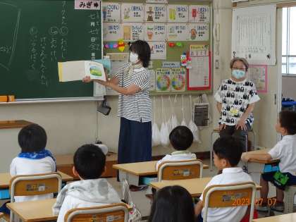【おはなしの森 低学年】7/7 公開日 2023/07/07 更新日 2023/07/07 地域学校共働本部 低学年のおはなしの森。今日はどんなお話かな?子どもたちはボランティアさんが準備してくださった絵本に目を輝かせ、くぎ付けになって聞き入っていました。