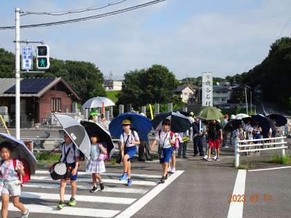 7月11日〜20日の間、夏の交通安全市民運動が実施されます。初日は、多くの地域の方が通学路や交差点で子どもたちの見守りやあいさつの声掛けをしてくださいました。地域の皆様、グリーンレンジャー、PTA旗当番の皆様のお陰で、古瀬間っ子は安全に登下校しています。皆様のご協力に心より感謝申し上げます。
