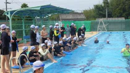 【5年生 プール納め】7/13 公開日 2023/07/19 更新日 2023/07/19 各学年から 5年生がプール納めを行いました。代表者によるリレー対決では、担任の先生との対決もありました。最後は、自由時間。今年最後のプールの時間を満喫しました。