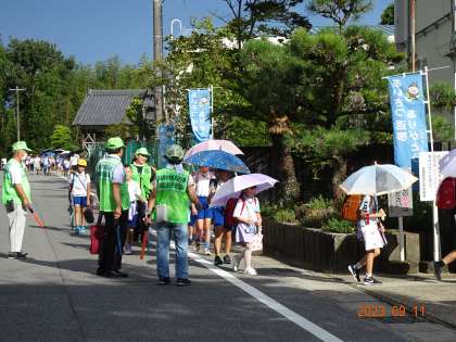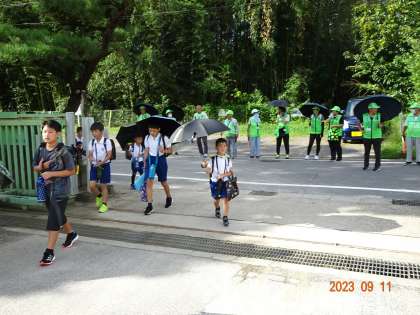 【TEAM益富「あいさつ・返事・ありがとう」週間】9/11 公開日 2023/09/11 更新日 2023/09/11 地域学校共働本部 9月11日〜15日まで、「TEAM益富あいさつ・返事・ありがとう」強調週間です。正門や昇降口に「くるみん・ますみん」の上り旗を設置し、子どもたちが進んであいさつができるよう、啓発をしています。グリーンレンジャーの皆さんが温かい声掛けをしていただき、子どもたちのあいさつの声もいつもより元気に響いていました。