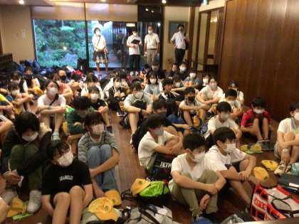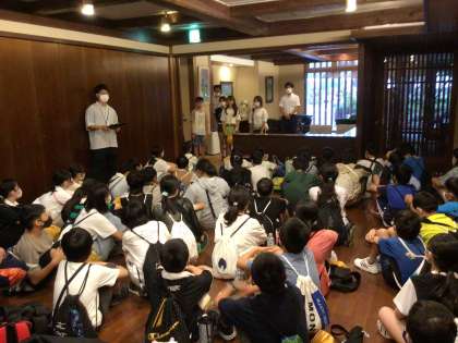 修学旅行 入館式 公開日 2023/09/20 更新日 2023/09/20 学校行事 6年生は、奈良公園での自由行動を終え、猿沢池前のよしだ屋旅館に着きました。入館式で、お世話になる旅館の方に「お願いします」の挨拶を声を揃えて言いました。友達と過ごす旅館の夜にわくわくしています。