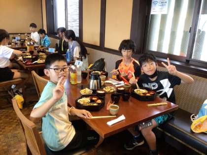 京料理の昼食。天ぷらやがんもどき、焼き魚など、和食のお弁当を美味しくいただきました。