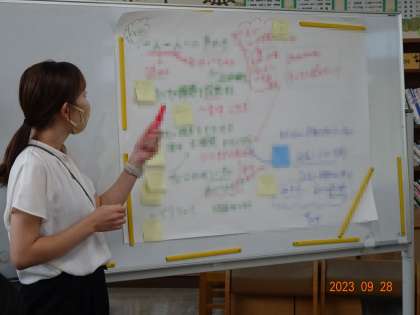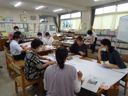 【先生たちの研修会】9/28 公開日 2023/10/04 更新日 2023/10/04 学校の特色ある活動 6年生の国語の研究授業の後、教員の研修会を行いました。対話の仕方、タブレット端末の使い方などを話し合いました。