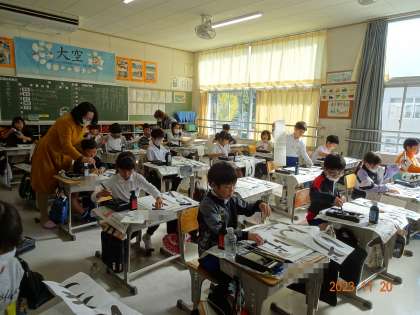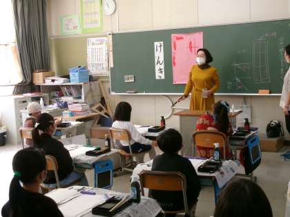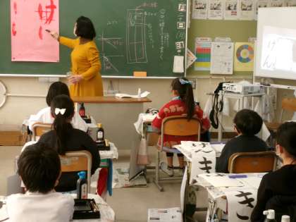 【3年 書写指導】11/20 公開日 2023/11/22 更新日 2023/11/22 各学年から 11月20日(月)3年生の書写指導が行われました。書写ボランティア講師さんに書き方のポイントを聞きました。書き初め大会の課題である「げんき」を書きました。これから、繰り返し練習していきます。