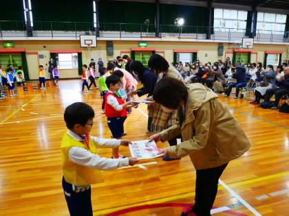 12月12日(火)1年生の学習発表会を行いました。10月から地域の昔遊び名人のみなさんや2年生に教えてもらって、自分たちも名人を目指して練習してきました。教えてもらったことを友達同士で教え合ったり、励まし合ったりしながら技を習得してきた子どもたち。 お父さんやお母さん、おじいちゃんやおばあちゃん、昔遊び名人のみなさんに披露し、褒めていただくことができて、また一歩成長できた学習発表会になりました。