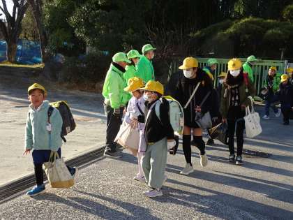 【令和6年 登校初日】1/9 公開日 2024/01/09 更新日 2024/01/09 地域学校共働本部 冬休みが終わり、令和6年の学校生活が始まりました。真っ青に澄み切った空の下、少し寒さを感じながらも、グリーンレンジャーさんに見守られ、古瀬間っ子は通学班で元気に登校してきました。