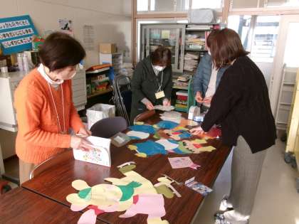 図書ボランティアの方が、図書館の整備をしてくださいました。不要になった本を片づけたり、新しい本にカバーをつけてくれたりして、子どもたちが気持ちよく使えるように作業を進めてくださいました。また、新年に合わせた掲示物を作成し、廊下に掲示してあります。