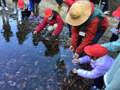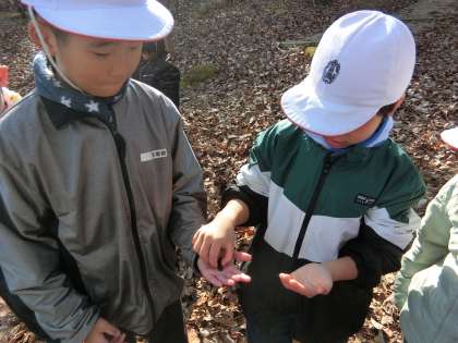 【2年生 トヨタの森】1/15 公開日 2024/01/16 更新日 2024/01/16 お知らせ 2年生が、冬のトヨタの森へ出掛けました。落ち葉がたくさんあり、ふかふかの落ち葉の布団で寝たり、落ち葉花火をしたりして楽しく遊びました。また、水辺には氷がはっていて触ったり、氷の下にいるヤゴを捕まえて、友達とヤゴリレーをしたりしました。五感を研ぎ澄ませ、冬の山を全身で感じることができました。