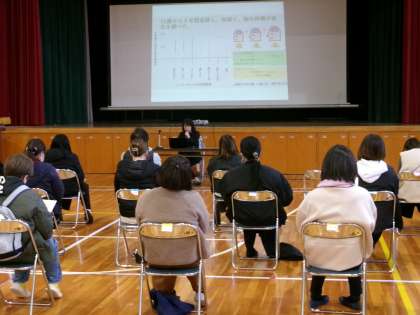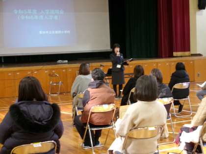 2月6日(火)令和6年度新入学児保護者対象の入学説明会を行いました。会の中で学校薬剤師の先生に「子どもの脳の成長とデジタルメディア」というタイトルで講演していただきました。スマートフォンを子どものうちから使った場合のデメリットについて詳しく話していいただきました。講演の後、入学についての説明を行いました。